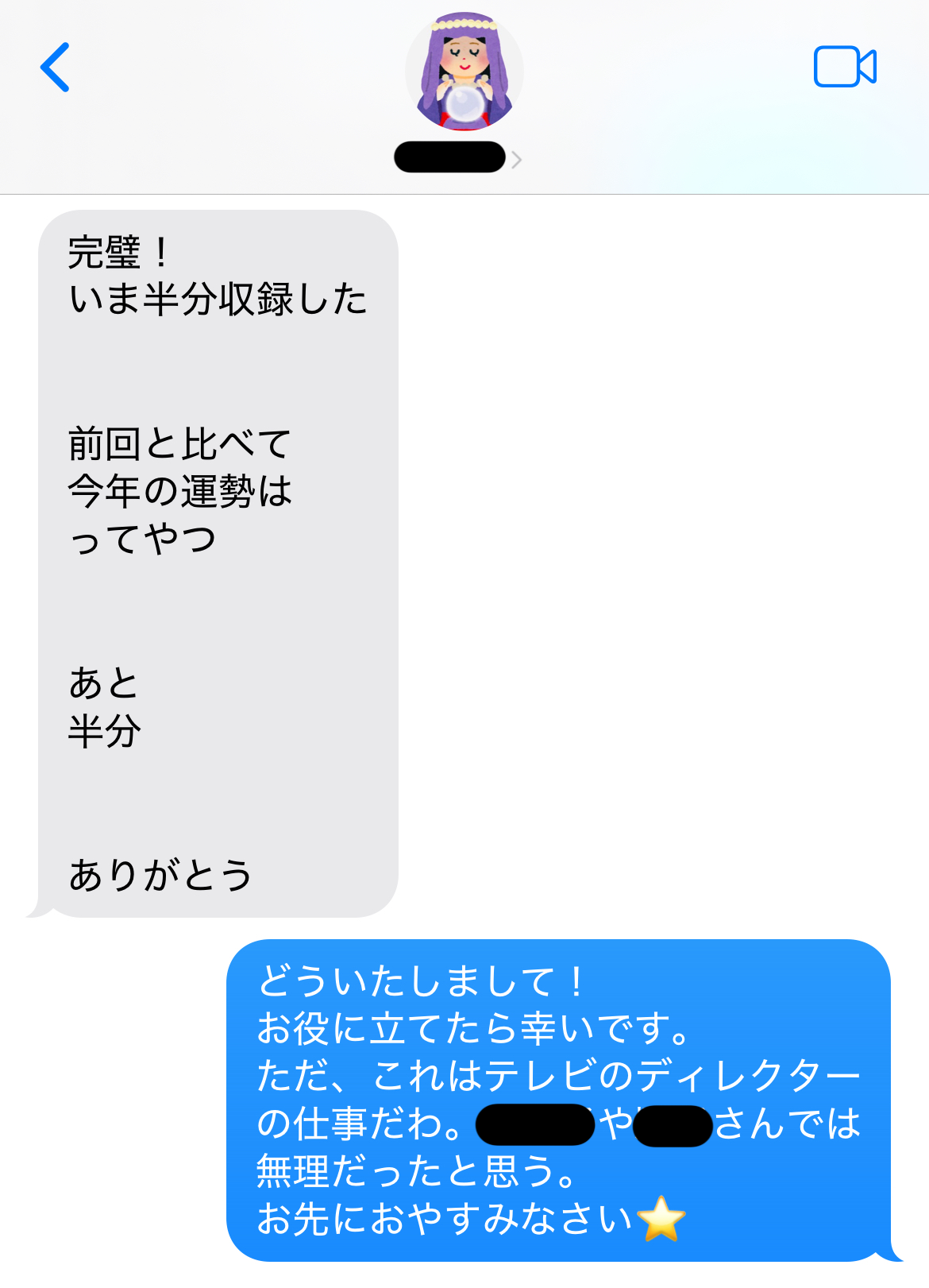 スマホで送った細切れの映像を見ながら収録なんてできるわけないだろう。いや、プロのテレビマンがするわけないだろう。しょうもないことさせられたオレの時間を返してくれ。そんなことを思いながら、無性に腹立たしい気持ちで眠りについた。後日放送を観てみると、案の定、私が送信した前回の放送はどこにも使われていなかった。スピ子は「前回と比べて今年の運勢はってやつ」と言っていたが、「前回と比べて」というのはどこにもなかった。「前回のがないと占えない」とも言っていたが、前回のを参考にすることなく、何の支障もなく占っている様子だった。いったいスピ子の魂胆は何だったのだろう? 私を弄びたいだけだったのか? 番組スタッフをディスりまくる必要はあったのか? 突然現れた新キャラ“事務所の社長ナマゴミさん”は何を仕掛けてくるのか? そしてなにより、私がリビングにいる間にサイコが帰ってきて修羅場になる展開じゃなかったんかーい! 壮大なドッキリにかけられる準備をしていたオレの緊張感を何かで補填しろ! しょうもないスピ子の暇つぶしに付き合わされた。