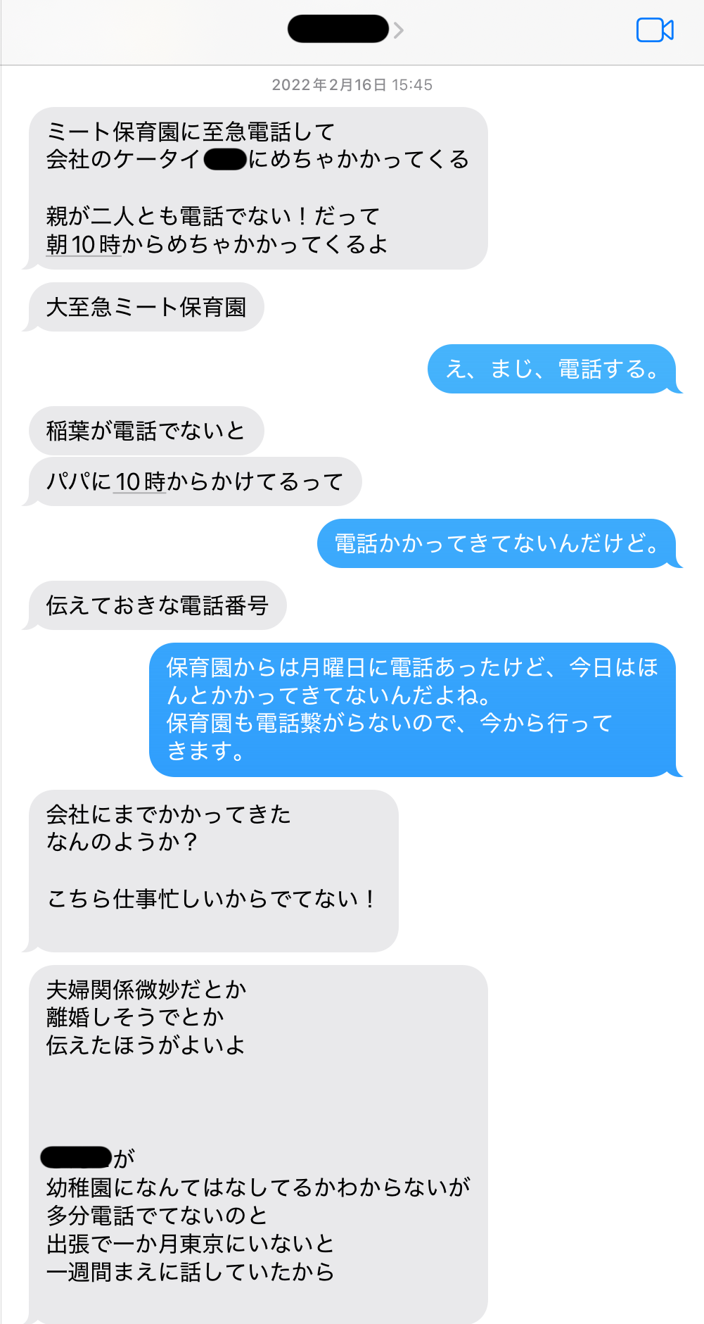 黒塗りは保育園名、サイコ、グミ子
