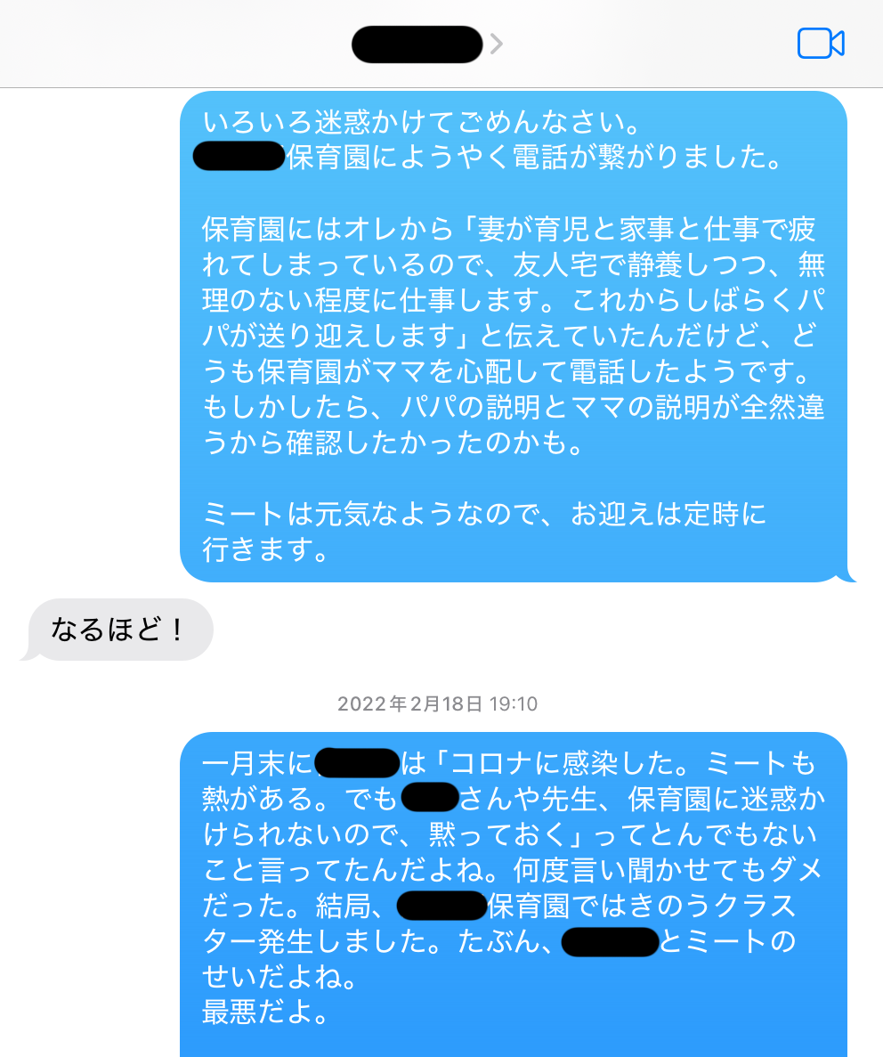 2月18日(金)から1週間、みーとが通う保育園は新型コロナのクラスター発生により休園となった。サイコは何度も「コロナになった」とか「私は濃厚接触者だ」とか、まるで“オオカミ少年”のように吹聴していたが、遂にクラスターの発生源となった模様だ。それからひと月後、今度は私が新型コロナに感染してしまった。2022年3月16日(水)から1週間の自宅療養である。その自宅療養期間が終わる3月22日(火)、今度はみーとくんが新型コロナに感染した。四六時中パパと一緒にいたのだから、当然である。さらに保育園もまたコロナ休園になり、3月いっぱいずっと家に缶詰めとなった。みーとくんとふたりでいったい何をしていたのか、ほとんど覚えていない。ZOOMを使ってラジオ番組の収録をしたり、渋谷区の保育園に転園するための書類を書いていたような記憶が少しある。