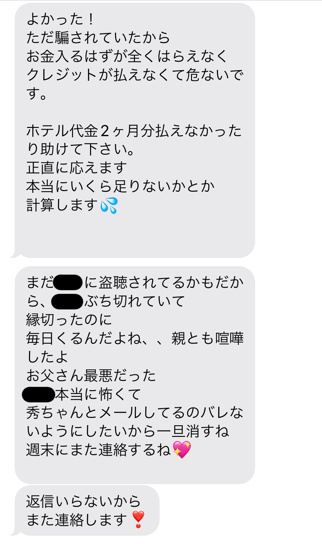 要はお金くれってことなんだけど、オレはもう何もしてあげる気はないんだ。