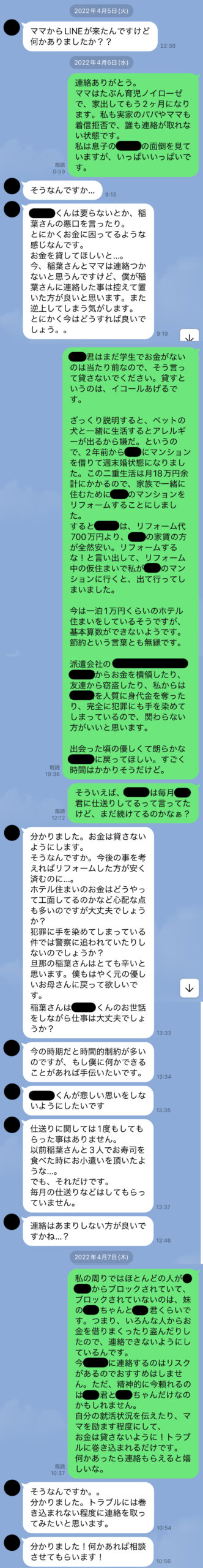 このところカールくんには迷惑しかけていない。本当に申し訳ない。この文面を見てもらえばわかることだが、カールくんは冷静な常識人で母親思いで、何の落ち度もない好青年である。息子のカールくんにまでお金を無心するようになったサイコ。私から奪った身代金100万円は、どうやら使い果たしたようだ。息子のカールくんと妹のバリ子に断られたら、そうそろ頼るあては無くなる頃だろう。